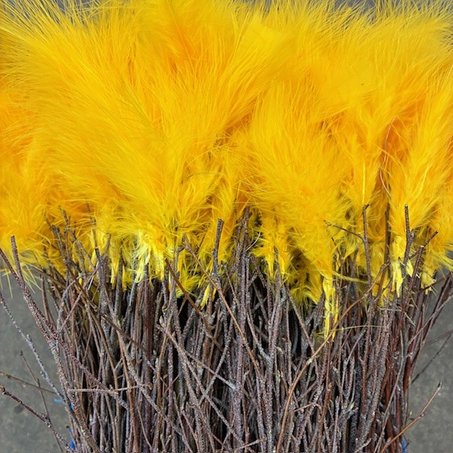 BJÖRKRIS BUNT FJÄDER DUN SOLGUL X5