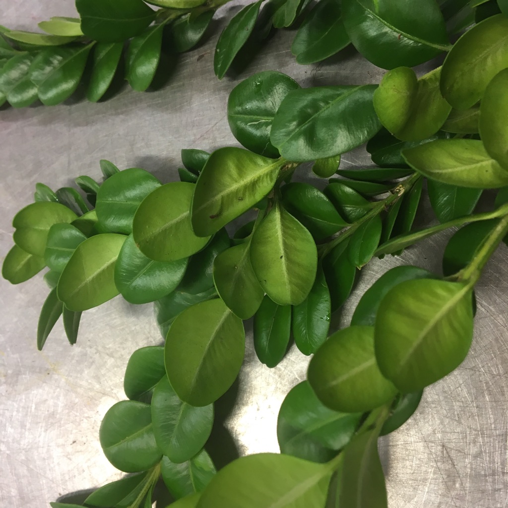 Hem » Webshop » Snittblommor » Grönt » GRÖNT BUXBOM MACRO STORBLAD 5KG